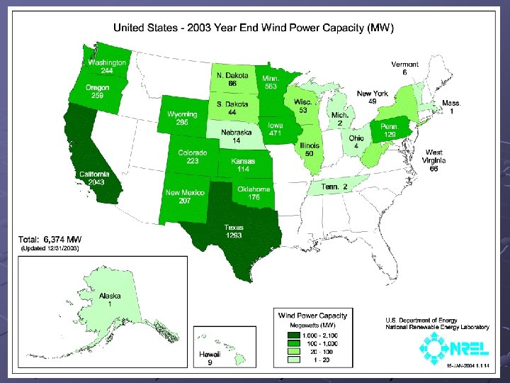 Capacity & Cost Trends Capacity (MW) Cost of Energy (cents/k. Wh*) Cost of Energy and Cumulative Domestic Capacity *Year 2000 dollars Increased Turbine Size - R&D Advances - Manufacturing Improvements