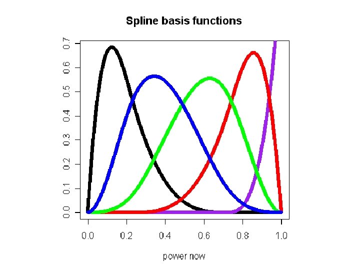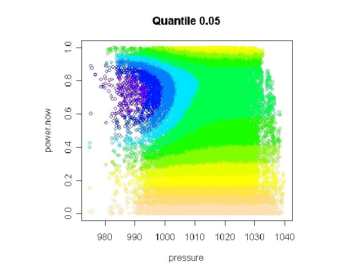 Quantile regression Model for the t-quantile (0 < t < 1) of the conditional distribution of a response variable: Q(t) = coefficients S b i (t) xi explanatory variables Our xi will be (nonlinear) spline basis functions of current power.
