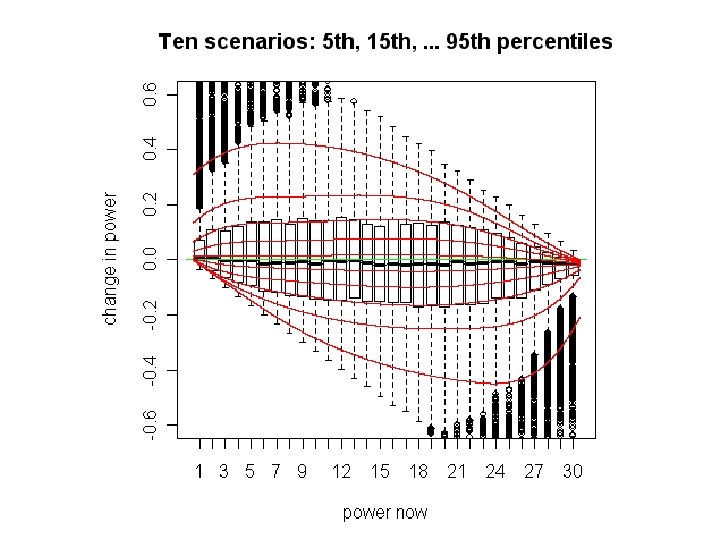 Additional predictor variables • Improve (? ) quantile models by adding terms with – – – wind direction barometric pressure time of day recent power variability etc. • In single-scenario forecasting, get little improvement on persistence. • In scenario generation, extra variables may help identify low- and high-uncertainty situations.