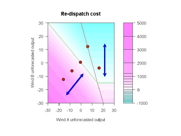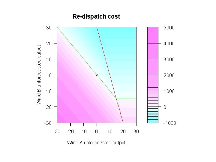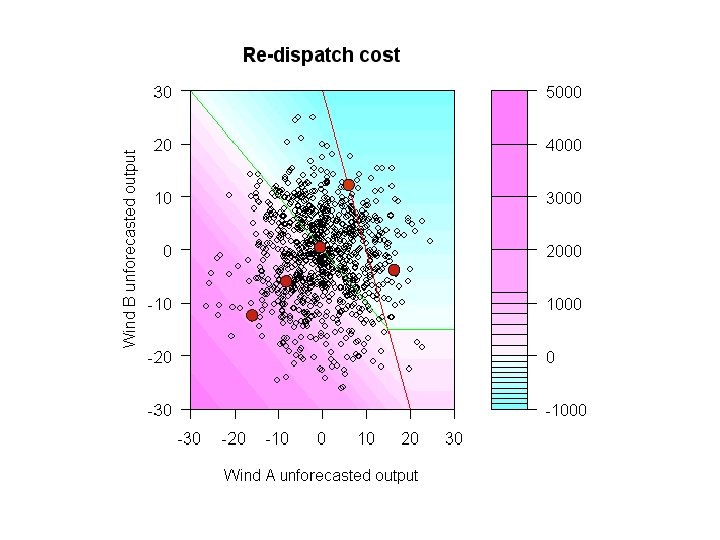 A way forward? • First solve the dispatch problem using only forecast wind (SPD). • Then generate relevant model scenarios for unforecasted wind at all sites. • Now re-solve allowing for re-dispatch costs created by the model scenarios (robust solution).