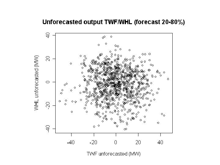 Unforecasted component of wind • The relevant quantity for grid operation is Unforecasted output = (actual output) – (forecast output) • Forecast is usually simple persistence forecast no change). (i. e.