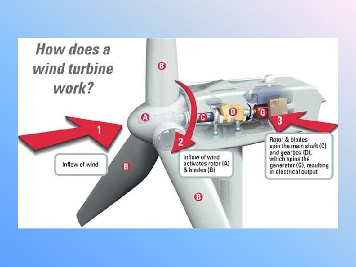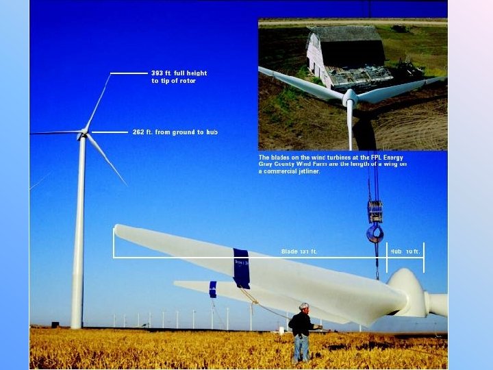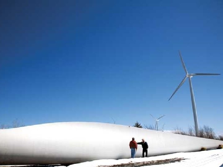 Large Wind Turbines • • 450’ base to blade Each blade 112’ Span greater than 747 163+ tons total Foundation 20+ feet deep Rated at 1. 5 – 5 megawatt Supply at least 350 homes