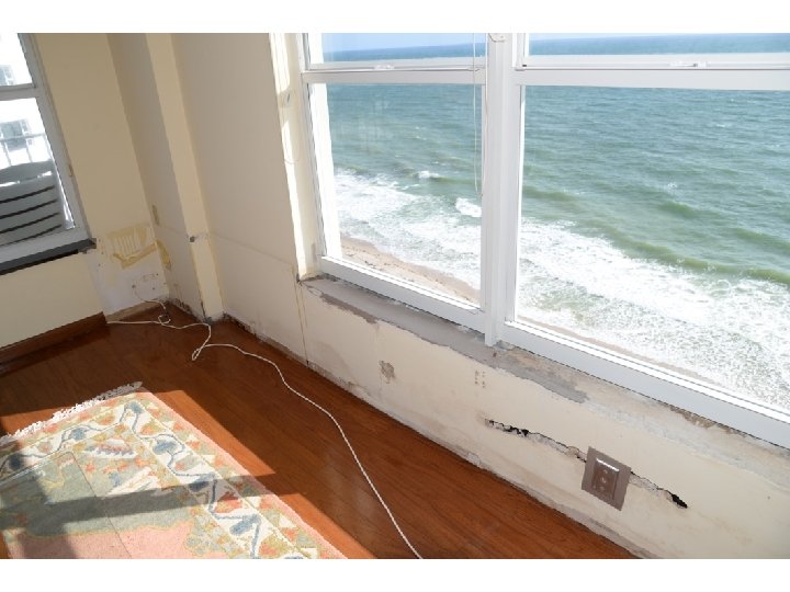 Hurricane Irma Fenestration Performance u Inspection of several thousand fenestrations in numerous high-rise buildings ranging in age from 55 years old to 4 years old found: u Although the condition of the fenestrations varied greatly due to age, the water resistance to high wind was similarly deficient in every case. u Water intrusion was most significant on the east and south exposures (the direction from which the wind was blowing). u Water intrusion on the leeward sides of the building was minimal but still took place. u Structural damage to the fenestrations was almost non-existent in every case with very few minor exceptions.