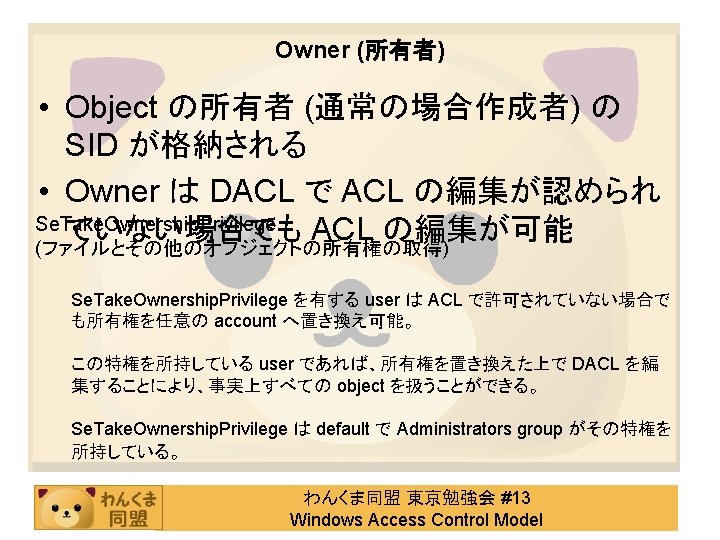 Windows Access Control Model by ちゃっぴ わんくま同盟 東京勉強会 #13 Windows Access Control Model