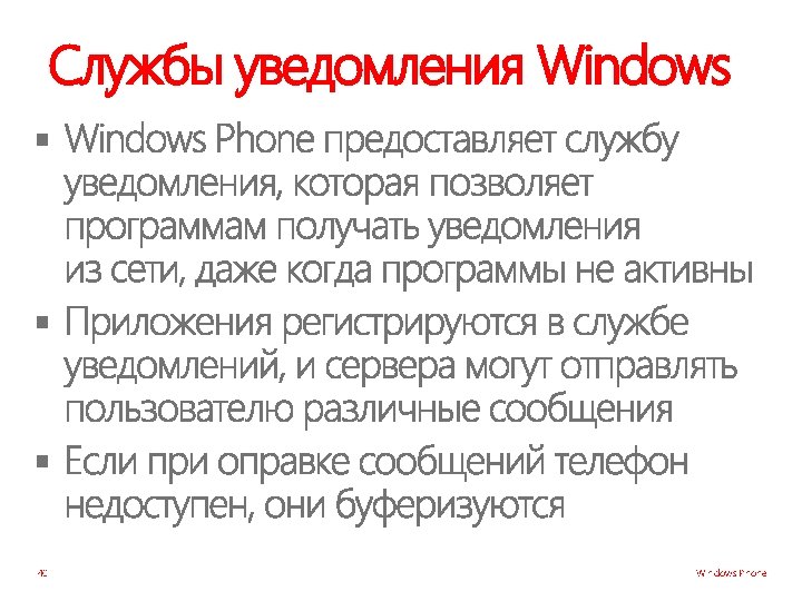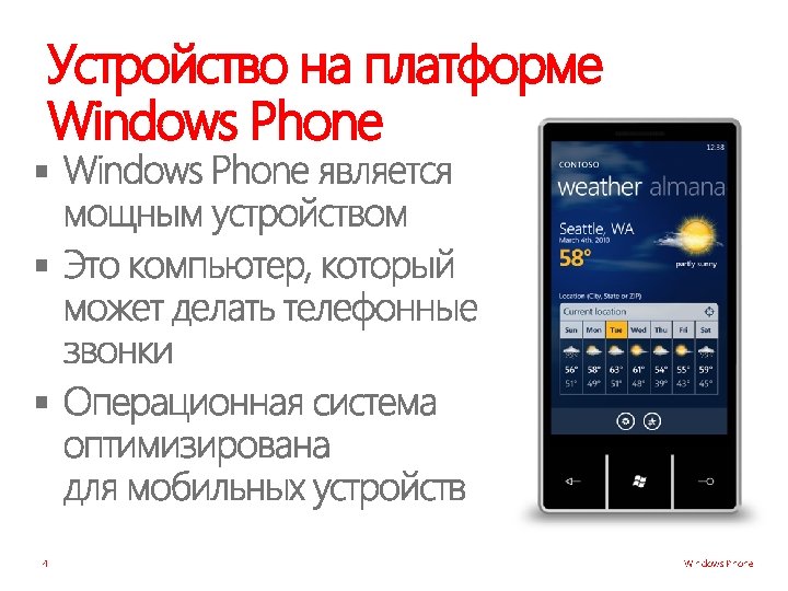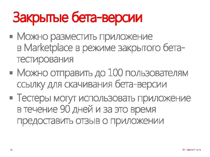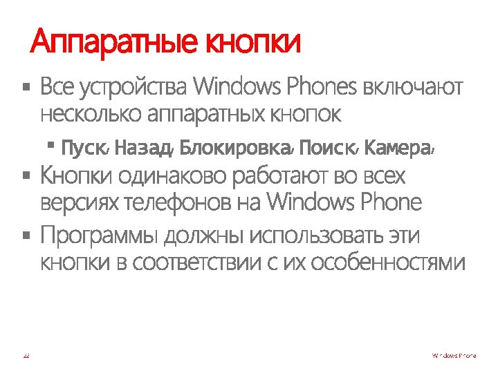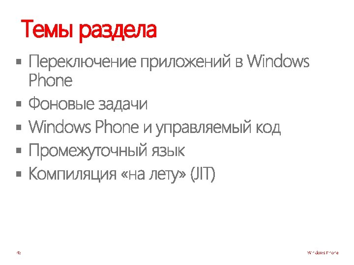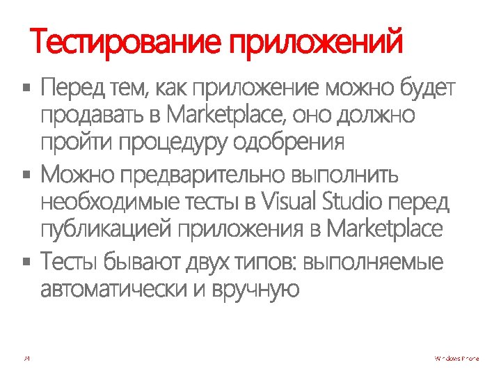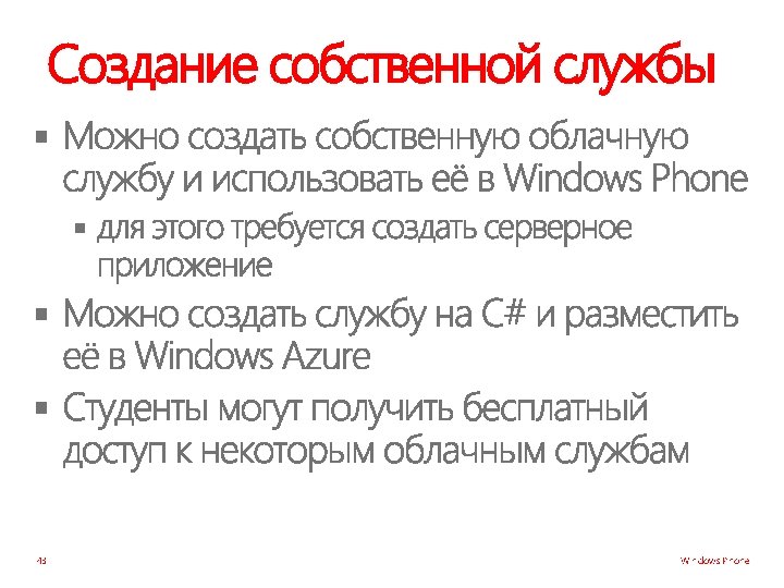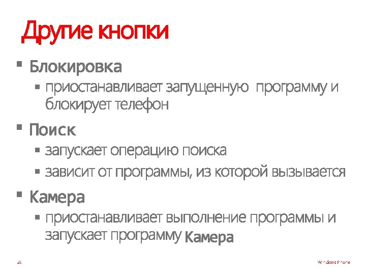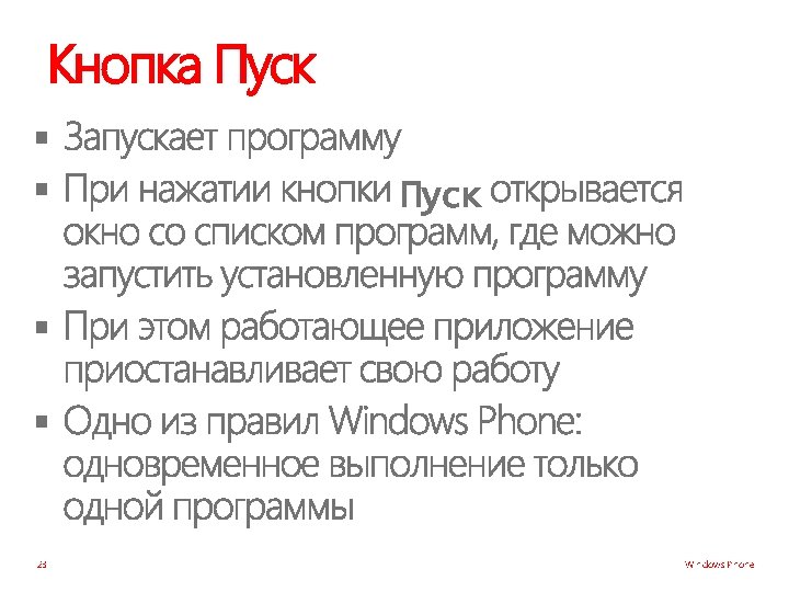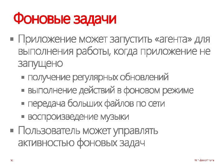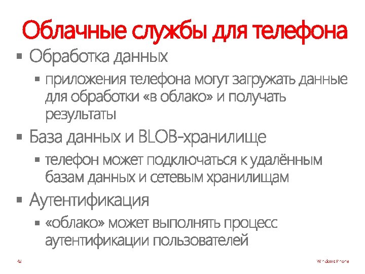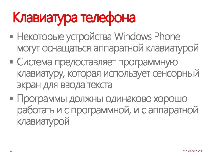 Windows Phone 5 Windows Phone 17 Windows Phone Slides: 76 Download presentation Процессор Windows Phone § § § 5 Windows Phone Камера § § 17 Windows Phone Особенности платформы Windows Phone § § § 32 Windows Phone Экосистема Windows Phone § § § 36 Windows Phone Windows Live и Xbox Live § § § 38 Windows Phone Карты Bing § § § 39 Windows Phone Windows Azure § § 41 Windows Phone Программы для Windows Phone § § 51 Windows Phone Microsoft. NET § § § 52 Windows Phone Создание программ для Windows Phone § § § 61 Windows Phone Эмулятор Windows Phone § § § 62 Windows Phone Silverlight и XNA § § § 67 Windows Phone Приложения Silverlight § § 68 Windows Phone Приложения XNA § § § 69 Windows Phone Windows Phone Marketplace § § 72 Windows Phone Правила Marketplace § § 73 Windows Phone