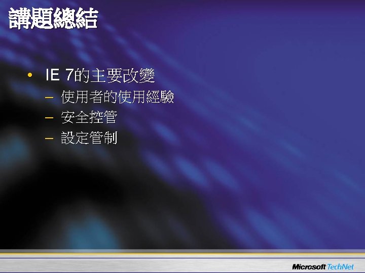 For More Information… • Tech. Net – www. microsoft. com/taiwan/technet • Windows Vista – www. microsoft. com/taiwan/windowsvista • Windows Vista: Resources for IT Professional – www. microsoft. com/technet/windowsvista/default. ms px • IE Website – http: //www. microsoft. com/windows/ie/ • MVP Community社群網站 – www. microsoft. com/taiwan/community