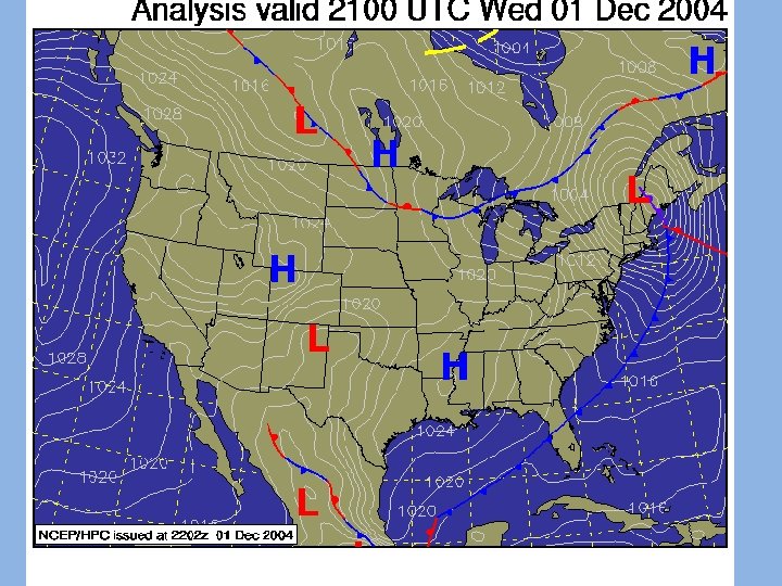 High Pressure Low Pressure = = Happy Weather Lousy Weather HL