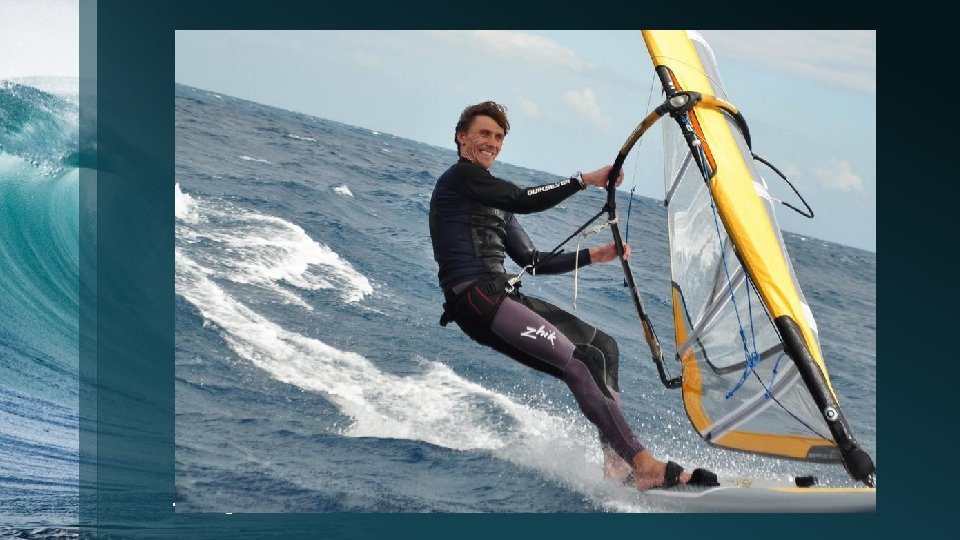 Historia windsurfingu • W różnych częściach świata pracowano nad połączeniem deski surfingowej z żaglem od końca lat pięćdziesiątych, • Za twórców windsurfingu uważa się dwóch Kalifornijczyków: żeglarza i konstruktora lotniczego Jima Drake'a oraz surfera i matematyka Hoyla Schweitzera. • Pod koniec lat sześćdziesiątych stworzyli deskę windsurfingową. Opracowali kształt żagla, masztu, bomu i deski oraz sposoby łączenia ze sobą tych elementów.