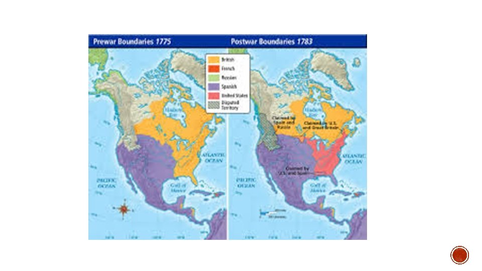 1. Talks for peace started in Paris in 1782 2. Continental Congress sent 4 men to work out the treaty. (Ben Franklin, John Jay, John Adams and Henry Laurens) 3. Treaty of Paris made Britain recognize the United States as an independent nation. a. b. c. 1. Borders were from the 13 colonies to the Mississippi River and north to Great Lakes and south to Florida. 2. Florida was given back to Spain 3. Americans agreed to ask State legislatures to pay Loyalists for lost property (most states ignored) 4. April 15, 1783 the treaty Was approved.