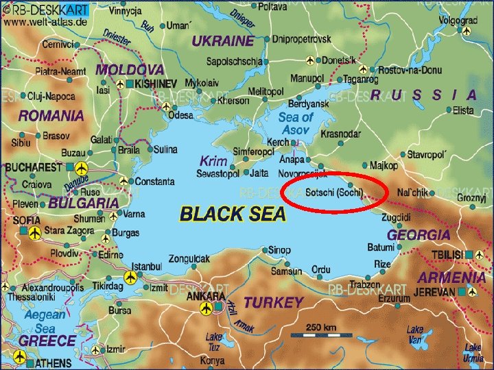 Sotschi ist eine russische Stadt an der Schwarzmeerküste vor dem bergigen Kaukasus. Es wird von etwa 330. 000 Einwohnern bewohnt. Sotschi ist mit den benachbarten Vororten, die sich entlang der Küste in einer Länge von 147 Km hinziehen die größte Stadt in Russland; ein Mehrfaches größer als Moskau. Die Stadtteile Velké Sotschi erstrecken sich auf über 3502 km². znak/emblem