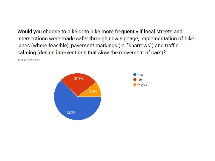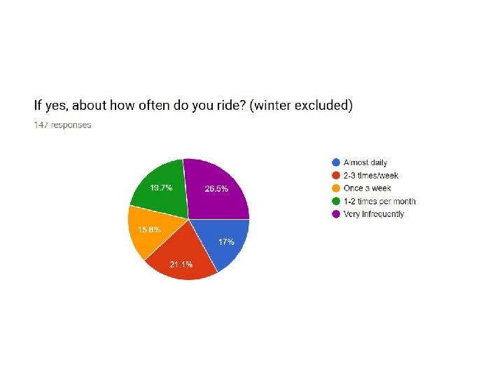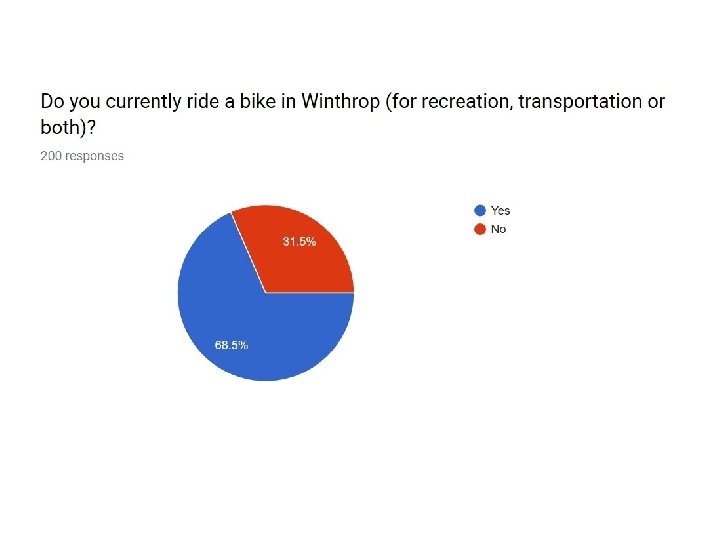 Winthrop Community Bike Survey • Conducted in person and online (email, social media) between 4/30 -5/30 in partnership with Bike Winthrop • 6 questions • 200 responses • 64 comments