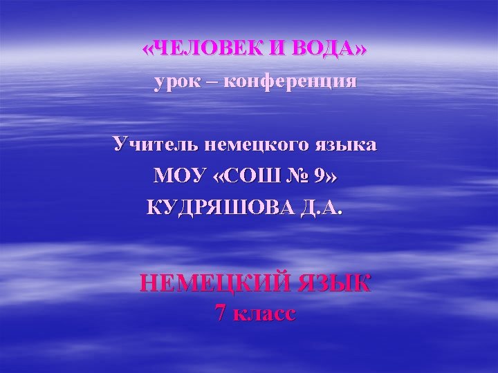 Das Wasser ist das Leben BAKTERIEN 90% der KÖRPER des FISCHES 80% des MENSCHEN 65% BLUT (кровь) 90% MUSKELN 75% KNOCHEN(кости) 28%