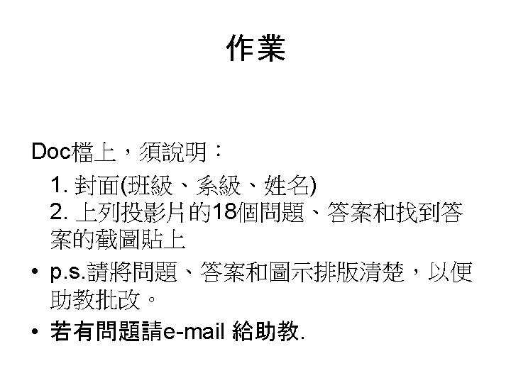 IP • 啟動Wireshark軟體並開始抓取封包。 • 啟動Ping. Plotter軟體 • ”Address to Trace”中輸入 ” gaia. cs. umass. edu” • ”# of time to trace”中輸入” 3” • “Trace Interval”中輸入” 1 seconds” • “Samples to include”中輸入“ 11”