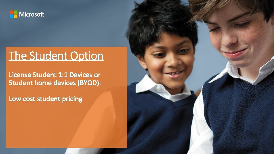 Student Advantage Office 365 Student Advantage is our landmark announcement at Educause on 15 th October 2013. We announced that Beginning December 1, 2013, 35, 000 education institutions worldwide that license Office for staff and faculty can provide access to Office 365 Pro. Plus for students at No Additional Cost. This is Office Pro. Plus subscription through Office 365. Benefit to students at no additional cost: • Access to the full desktop suite of Office Pro. Plus including Word, Excel, Power. Point and One. Note • 5 downloads including both PC and Mac • Latest version of Office for both PC and Mac ensuring students are current on their office skill sets • Ability to edit Office Documents through Office Mobile on i. OS and Android • Office on demand or Streaming Office for windows devices Requirements: • Available for institutions licensing O 365 Pro Plus organization-wide for all Faculty & Staff • Available to EES and OVS-ES customers via a $0 Office 365 Pro. Plus for Students SKU • Requires an Office 365 subscription (Free for education) Note: You don’t have to turn on email or any of the other features of Office 365. You can only turn on Office Pro Plus subscription (if you prefer).