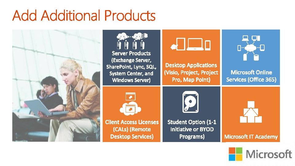 Open License for Academic 5 -license minimum order No institution-wide commitment Software Assurance optional 2 -year agreement term Perpetual licenses No student option available One price level Select Plus for Academic Count PCs No institution-wide commitment Software Assurance optional 1, 500 points minimum order Student Select optional One price level Perpetual licenses Open Value Subscription - OVS Count employees (FTE) 5 -999 FTE Qualification Software Assurance included 12 or 36 month subscription term Primary and secondary schools only Student Option with free ESD* 2 pricing levels for platform products – E&F Limited Online Services Primary/secondary and higher education institutions Wisconsin K-12 Enrollment for Education. Purchasing Contract Solutions - EES 25 FTE or More Count employees (FTE) Requirement 1000 FTE Minimum Software Assurance included 12 or 36 month subscription term Primary and secondary Wisconsin K-12 schools only Purchasing Contract Price Student Option, with free Level B ESD* Tiered pricing levels for platform products Online Services Primary/secondary and higher education institutions