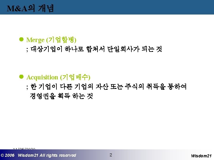 기업합병 및 분할 실천 프로세스 Wisdom 21 Management Consulting www. wisdom 21. co. kr