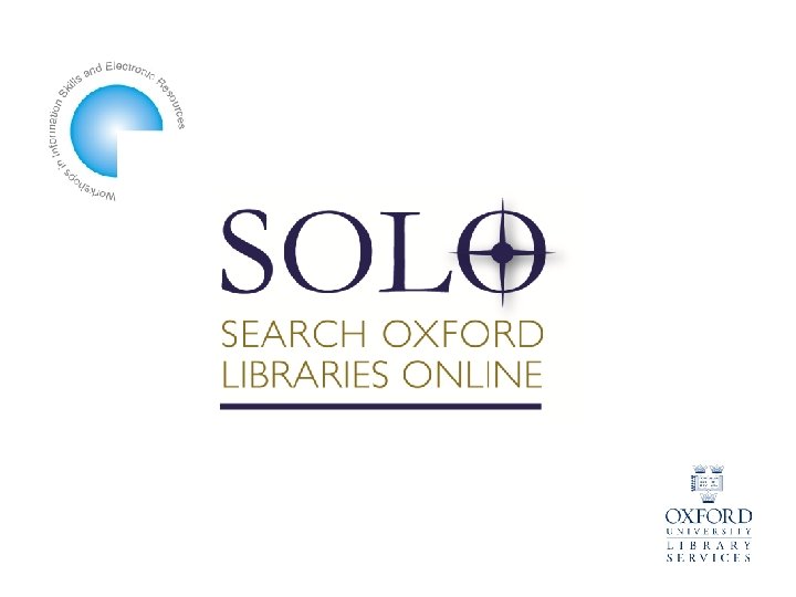 Key search tools SOLO – Search Oxford Libraries Online (a new resource discovery tool) l OLIS – Oxford Libraries Information System (the library catalogue) l Ox. LIP+ - Oxford Libraries Information Platform (gateway to e-resources/databases) l l OU e-journals – Oxford University’s e-journal portal