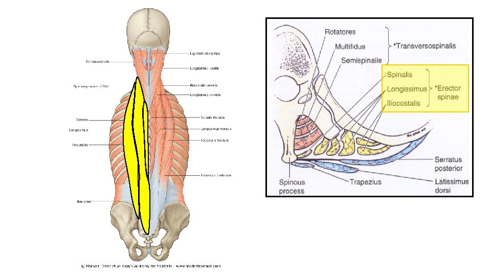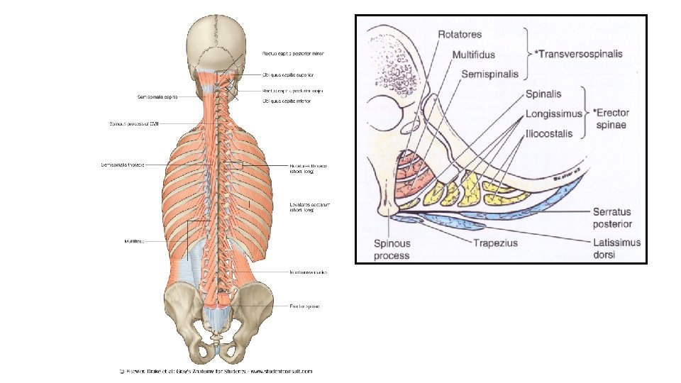 1. Rückenmuskulatur • Oberflächlichen • spinohumeralis izmok • trapezius, rhomboidei, latissimus dorsi, levator scapulae • Tiefen Rückenmuskeln (autochthone) • m. splenius cervicis • m. erector spinae • • m. spinalis m. longissimus m. iliocostalis mm. transversospinales • • • mm. semispinales mm. multifidi mm. rotatore