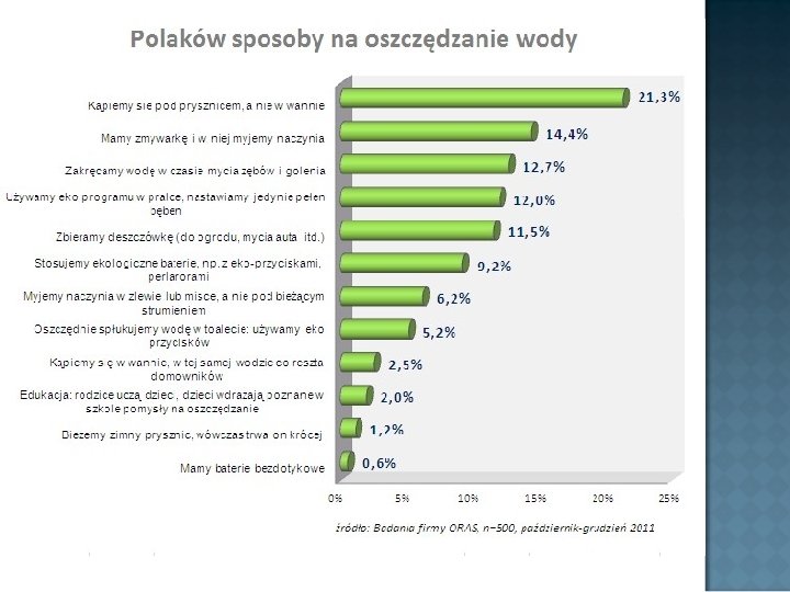 Słodka woda to zaledwie ok. 3% zasobów wody na świecie. Około 1, 2 miliarda ludzi na świecie nie ma dostępu do czystej wody.
