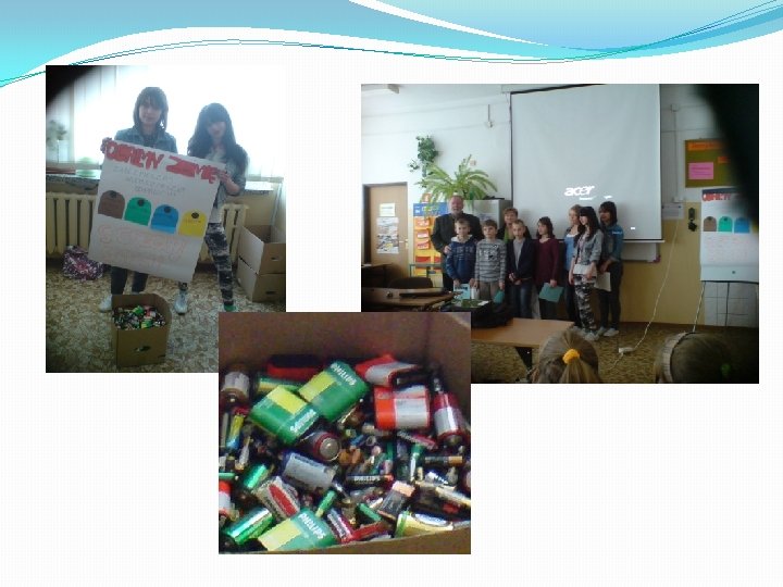 KONKURS NA ZBIÓRKĘ ZUŻYTYCH BATERII. TAK WIELU LUDZI NIE ZDAJE SOBIE SPRAWY Z TEGO WAŻNE JEST ZABEZPIECZANIE NIEBEZPIECZNYCH ODPADÓW - WYRZUCA JE DO KOSZA Z ODPADAMI KOMUNALNYMI, NIE MYŚLĄC O TYM, JAK BARDZO NISZCZY NASZĄ PLANETĘ. POSTANOWIŁYŚMY ZORGANIZOWAC KONKURS NA ZBIORKĘ ZUŻYTYCH BATERII - , , OCALMY ZIEMIĘ’’. ZNALAZŁYŚMY SPONSORA, KTÓRY UFUNDOWAŁ ATRAKCYJNE NAGRODY – FIRMA , , MPGK’’ CHEŁM. DO KONKURSU PRZYSTAPIŁO WIELU UCZESTNIKÓW. WSPÓLNIE OCALILIŚMY NASZĄ PLANETĘ PRZED PONAD TYSIĄCEM ZUŻYTYCH BATERII.