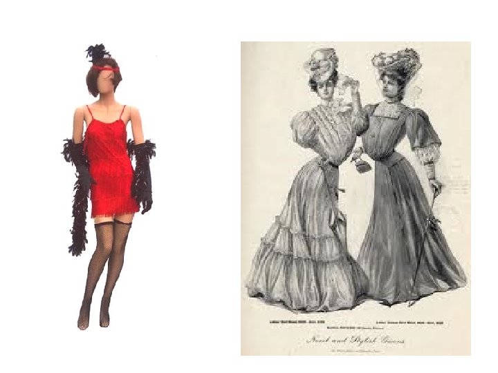 The Flapper vs. The Gibson Girl The Flapper • • • Gibson Girl Short dark bobbed hair Short skirts just below the knee, and no corsets. Bell-shaped hats Waistline dropped to hipline. Silk stocking that were visible Wore makeup (eyeliner, mascara, lipstick, blush. ) all dark and visible. Dancing was a popular activity. Casually dated Smoked and drank in public • • Long loose hair Long straight skirts with corsets. Large hats Shirts with high collars Google images (gibson girl) Wore absolutely no make up Activities included, tennis, bicycling, golf. Sports where they could not get hurt. Not allowed to date, they were set up with their husband by their parents. Drinking and smoking were not allowed at all. It was not womanly. Google images (flapper girl) AA
