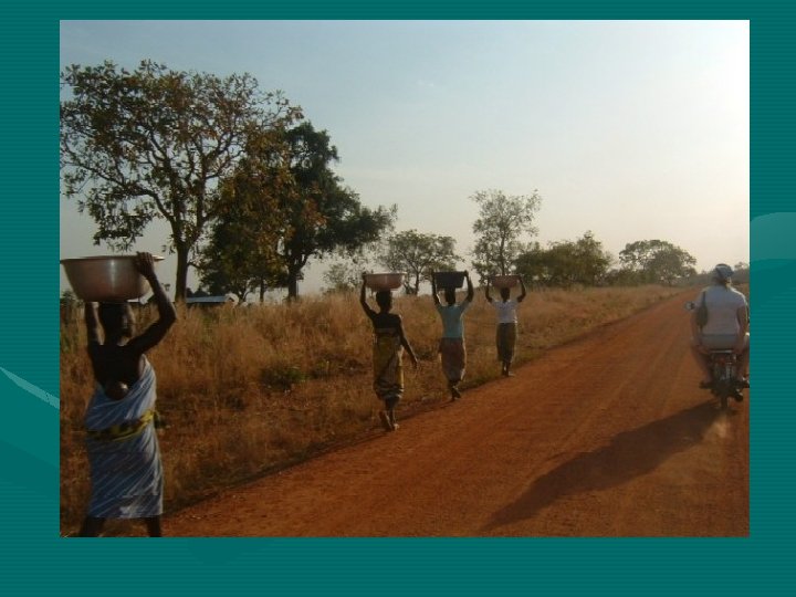 The weather • Two rainy seasons, water flocks, people just don’t go out. Temperature drops from 90 to 80 and people wear coats. • One dusty season when the Armattan, wind from the Sahal desert blows. All is white. Sun is red most day. This lasts one to 2 months. Everything is very dry then. • In Burkina Faso in April, it was 100 -110 degrees everyday.