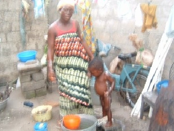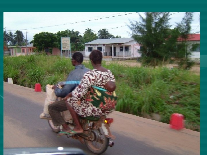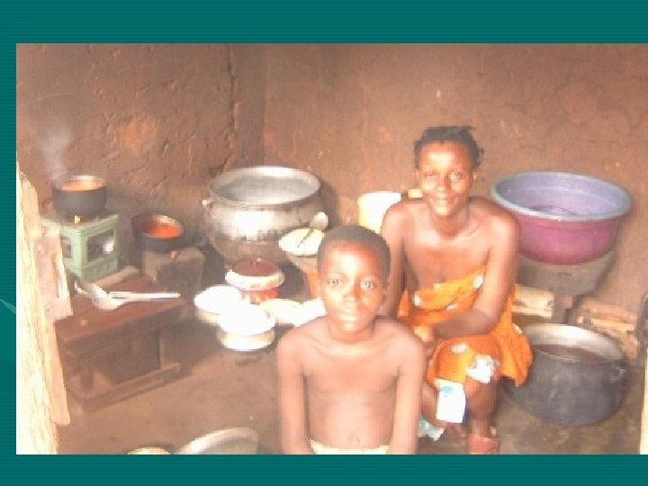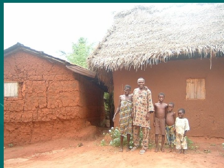 Family life • Red earth stone or cement brick houses • Life happens mostly in interior court yards • No running toilets most times • No paved roads: Hens, goats, and pigs run free • Cooking on a small charcoal stove • Mostly no refrigeration, no electricity • Zem, taxi or foot transportation