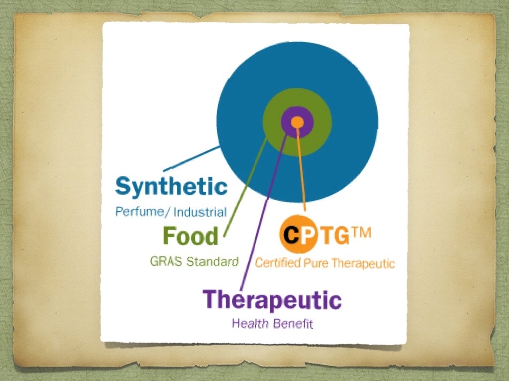 Certified Pure Therapeutic Grade CPTG is: • Verified Pure • Beyond Organic • Free of Pesticides and contaminants • Plant material sourced from native origins • 3 rd Party Testing is used to certify purity and potency ®
