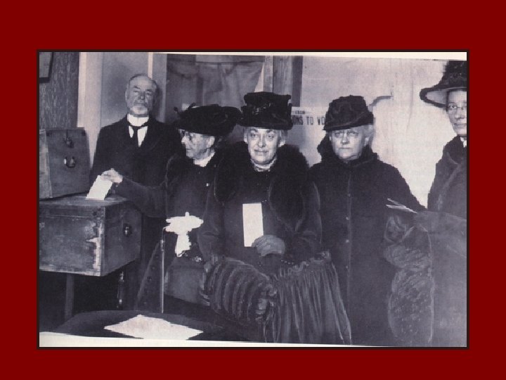 Dates when states passed Woman Suffrage • 1890 Wyoming (1869 in Wyoming Territory) • 1893 Colorado • 1896 Utah, Idaho (1870 -1887 in Utah Territory) • 1910 -1918 Washington, California, Oregon, Kansas, Arizona, Nevada, Montana, New York, Michigan, South Dakota, Oklahoma • 1920 19 th Amendment to U. S. Constitution