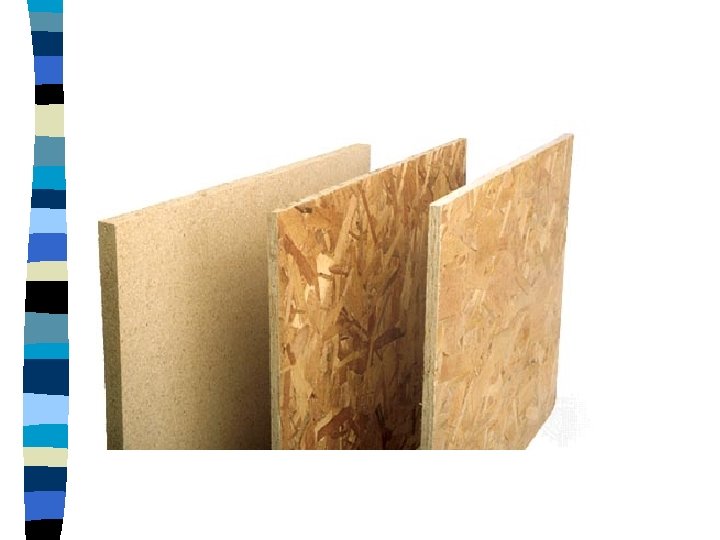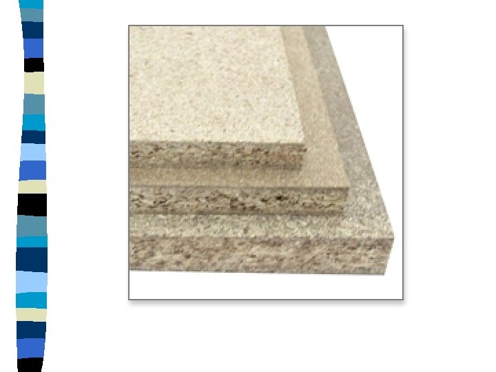 Particle Board n Manufactured sheets of wood made from ground up scrap wood, sawdust, and glue