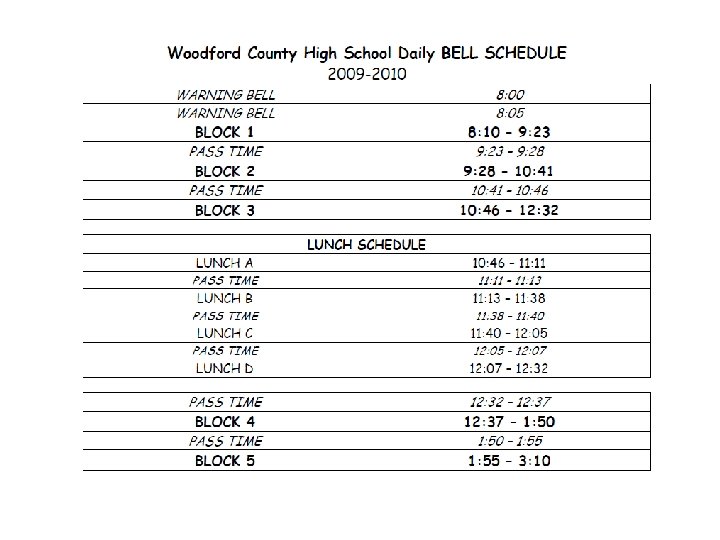 Woodford County High School Trimester Scheduling June 2010