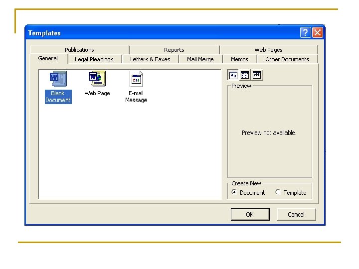 n Novi dokumente se kreira na dva načina q Iz menija File klikom na New a zatim izborom Blank Document ili q Klik na sa standardne linije alata