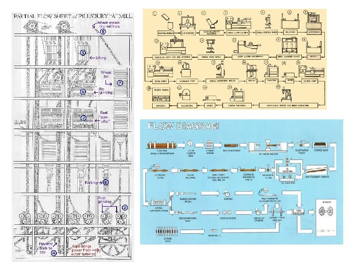 Record: Diagrams Flow Diagram • Drawing of the working area, showing the location of the various activities identified by their numbered symbols • Associated with particular flow process chart either man type or machine type. • Routes followed in transport are shown by joining the symbols in sequence by a line which represents as nearly as possible the path or movement of the subject concerned • Procedures: 1. The layout of the workplace is drawn to scale. 2. Relative positions of the machine tools, work benches, storage, and inspection benches are marked on the scale. 3. Path followed by the subject under study is tracked by drawing lines. 4. Each movement is serially numbered and indicated by arrow for direction. 5. Different colours are used to denote different types of movements.
