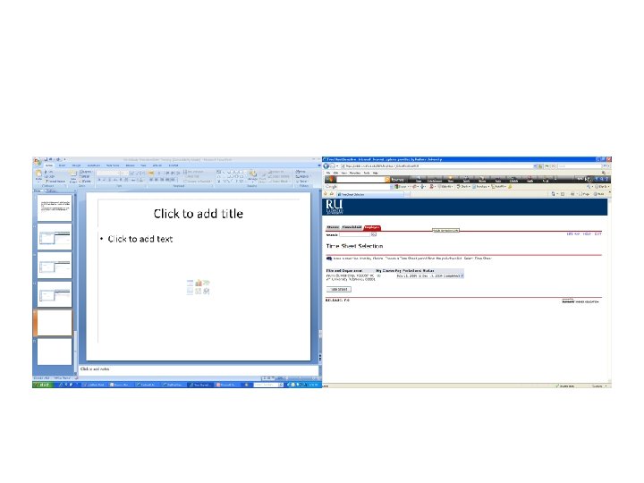 End of Pay Period • On the last day of the pay period the work study student will “Submit for Approval” their timesheet, by the 10: 00 a. m. deadline. • The Supervisor will then log into RU Portal and approve those hours for each student. • Supervisors must approve work study time sheets by 5: 00 p. m. on the deadline date.