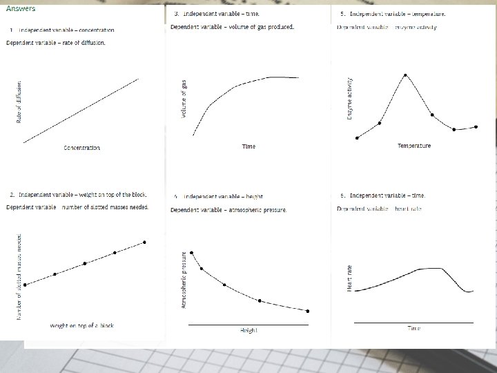 Linking the Variables - Answers For each of the graphs, finish the sentence. As the (independent variable)…. , the (dependent variable) …. . As the height of the ramp increases, the time taken to reach the bottom of the ramp decreases. As the mass increases, the spring extension increases.