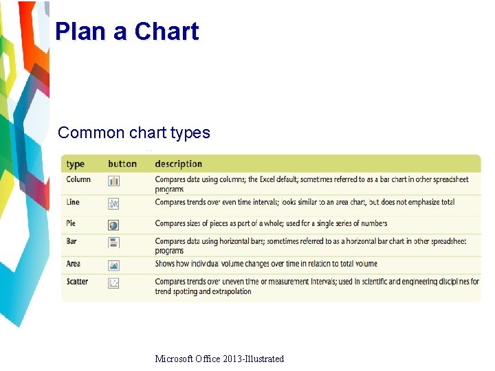 Plan a Chart Common chart types Microsoft Office 2013 -Illustrated