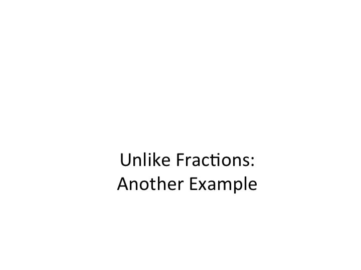 Compare Fractions 1 3 5 The fractions 4 and 8 have unlike denominators and unlike numerators. Fractions that have unlike denominators are unlike fractions.