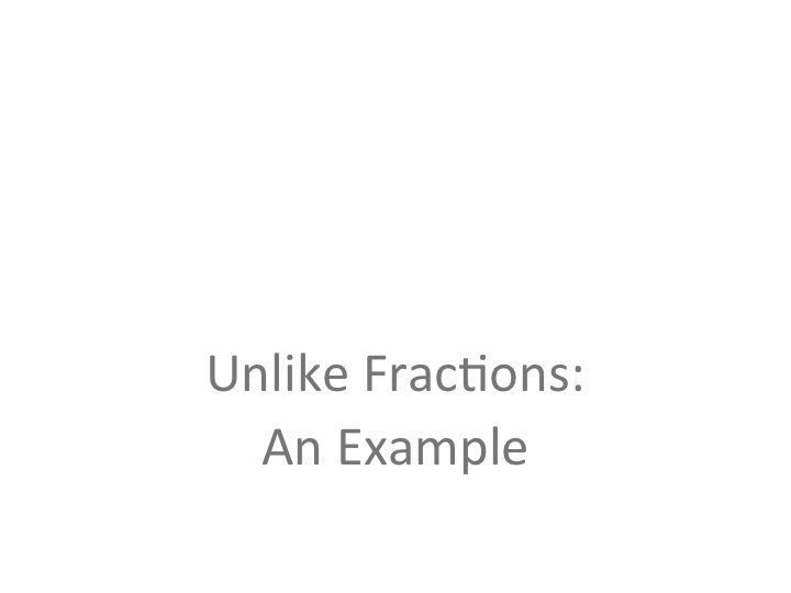 Working with unlike fractions Introducing: • Unlike fractions 3 4 1 2
