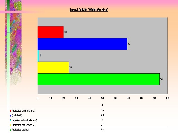 Discussion • Despite the incidence of STI’s amongst these women being lower than previously assumed, screening & treatment of this group is essential. • Alcohol and drugs were necessary for women to work. • Sexual health care was combined with primary care advice for this group.