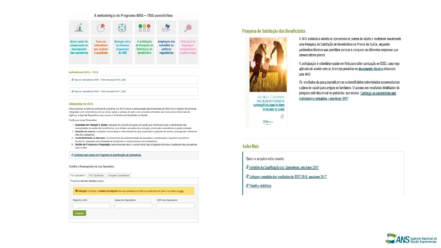 IDSS Ano-base 2019 Fichas técnicas e documento técnico para realização da pesquisa já disponíveis no portal da ANS, em: Planos e Operadoras / Informações e Avaliações de Operadoras / Programa de Qualificação de Operadoras / Conheça mais dados do Programa de Qualificação de Operadoras / Dados do Programa de Qualificação de Operadoras / Ano 2020 (Ano-base 2019) OU link: http: //www. ans. gov. br/planos-de-saude-e-operadoras/informacoes-e-avaliacoes-deoperadoras/qualificacao-ans