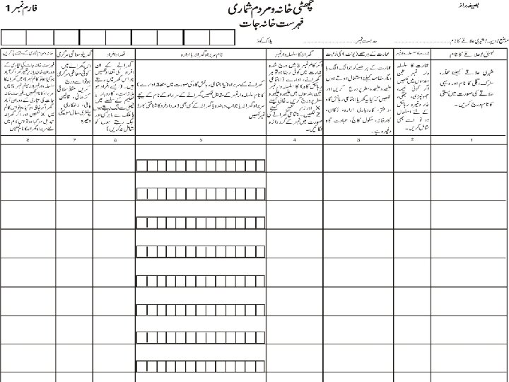 SCOPE OF CENSUS i) Area to be covered. Census covers entire territory of Pakistan. ii) Population to be covered. All persons living in the country at the time of census dates are enumerated. Foreign nationals are also enumerated except diplomatic personnel and their families. iii) Topics of information (Questionnaire). 8
