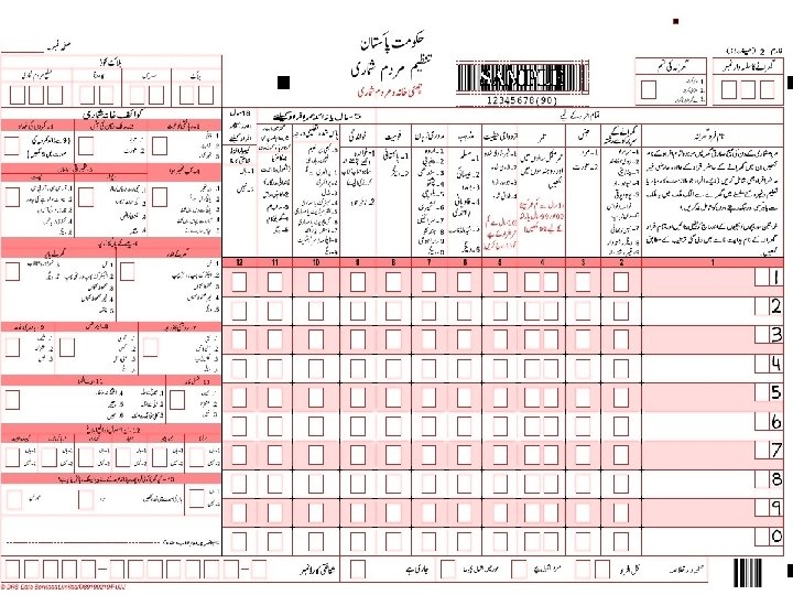 D) ECONOMIC CHARACTERISTICS (for 10 years +) Usual Activity - Part time Activity – Occupation - Industry Employment status - Reason of unemployment E) FERTILITY / MORTALITY (females 15 -49 Years) No. of children ever born by sex No. of children still living by sex No. of children born during last 12 months by sex No. of children still living by sex F) MISCELLANEOUS Nature and Type of Disability if any Holding of CNI Card by persons of 18 years plus 11