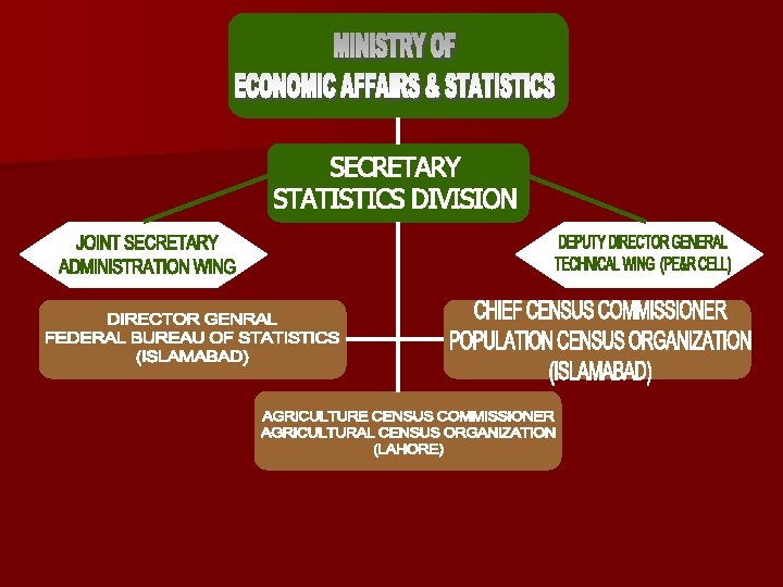 POPULATION CENSUS ORGANIZATION Ø Established in 1950 under the Census Act, 1949 as part of Ministry of Home Affairs. Ø After 1972 Census, Census Organization was established on permanent footing and made an attached department of Ministry of Interior. Ø In 1973 Registration Organization and Census Organization were merged and called as “Census & Registration Organization”. Ø In 1978, the Census Organization was detached from “Census & Registration Organization” and made an attached department of Statistics Division and renamed as PCO. 3