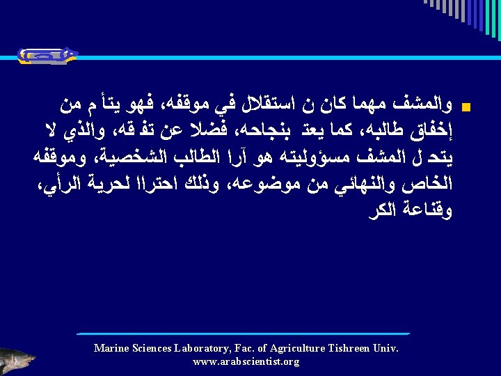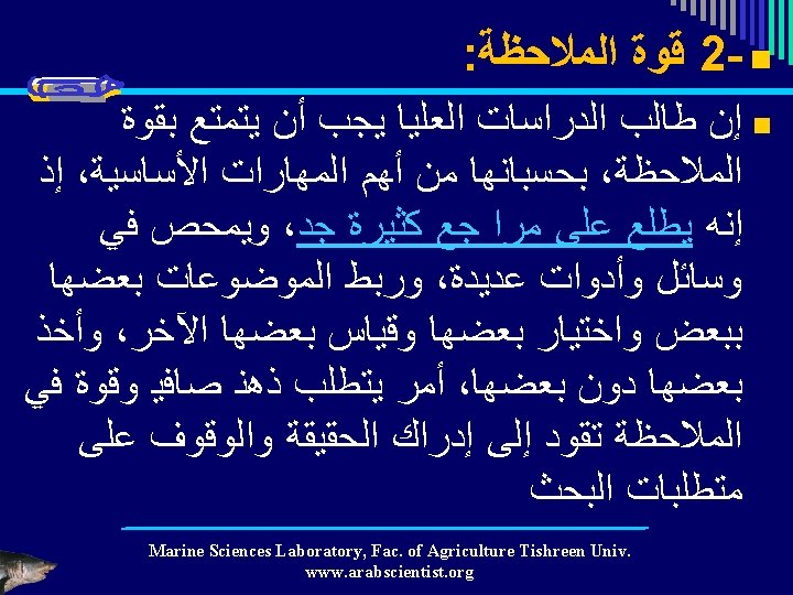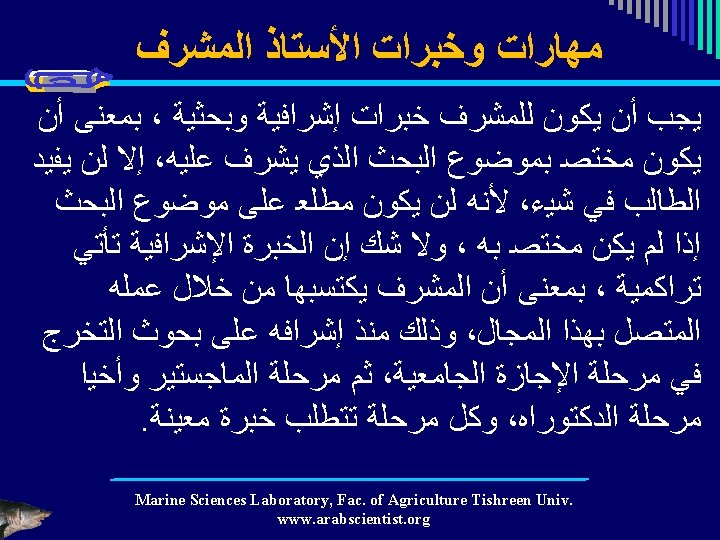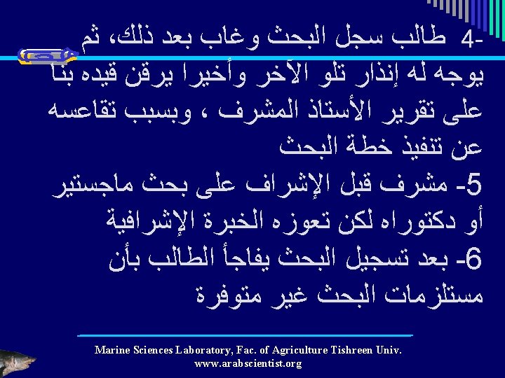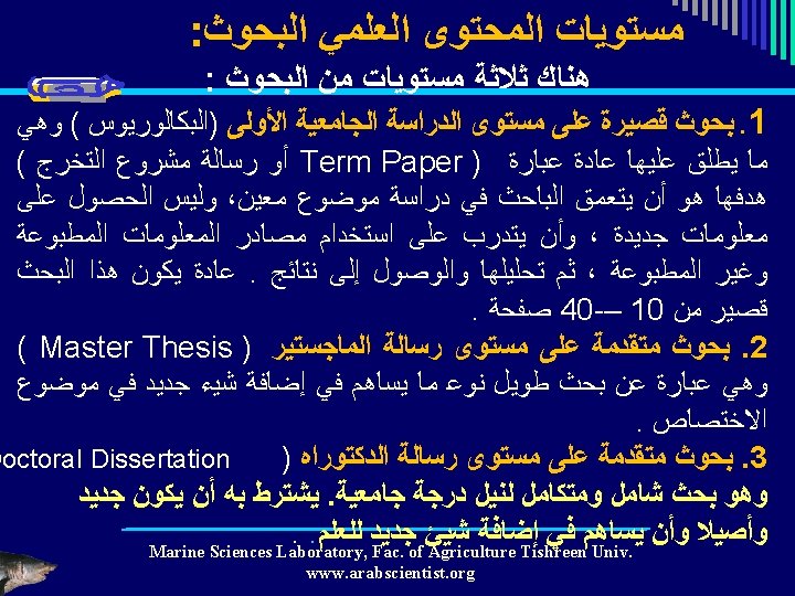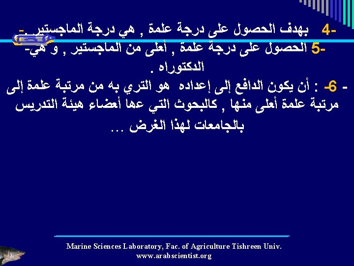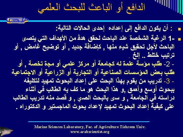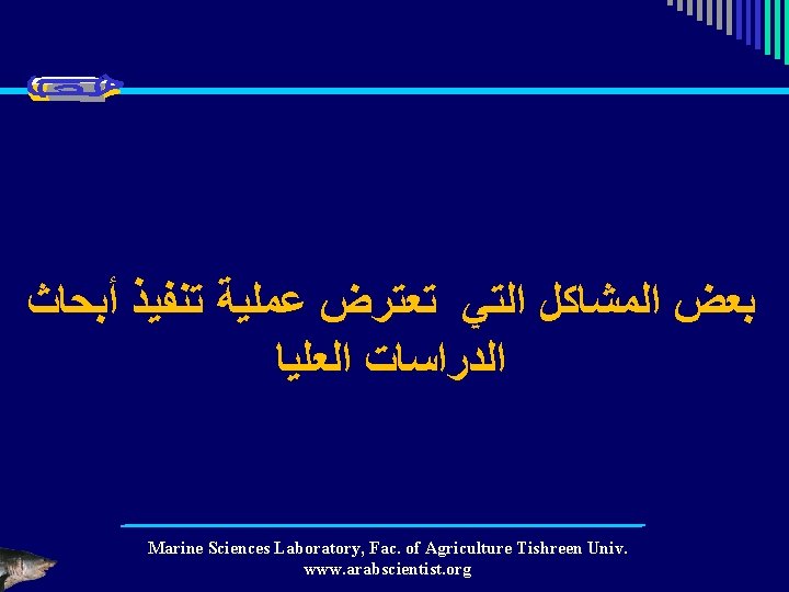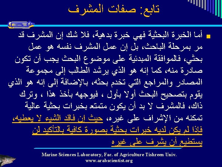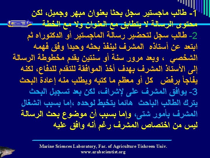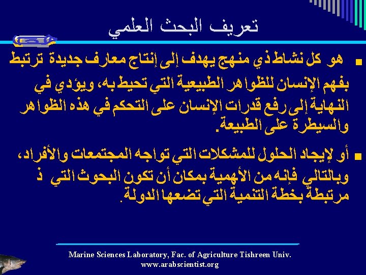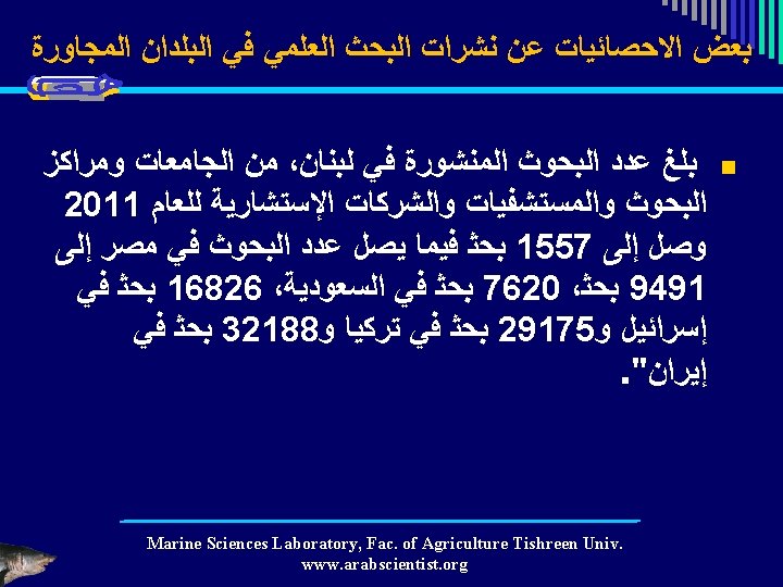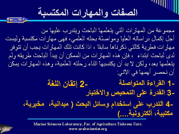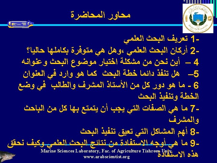 ﻹﺻﻐﺎﺋﻜﻢ ﺷﻜﺮ ﻭﻣﺘﻤﻴﺰ ﻧﺎﺟﺢ ﻋﻠﻤﻲ ﺑﺒﺤﺚ ﺍﻟﺘﻤﻨﻴﺎﺕ ﻣﻊ Marine Sciences Laboratory, Fac. of Agriculture Tishreen Univ. www. arabscientist. org