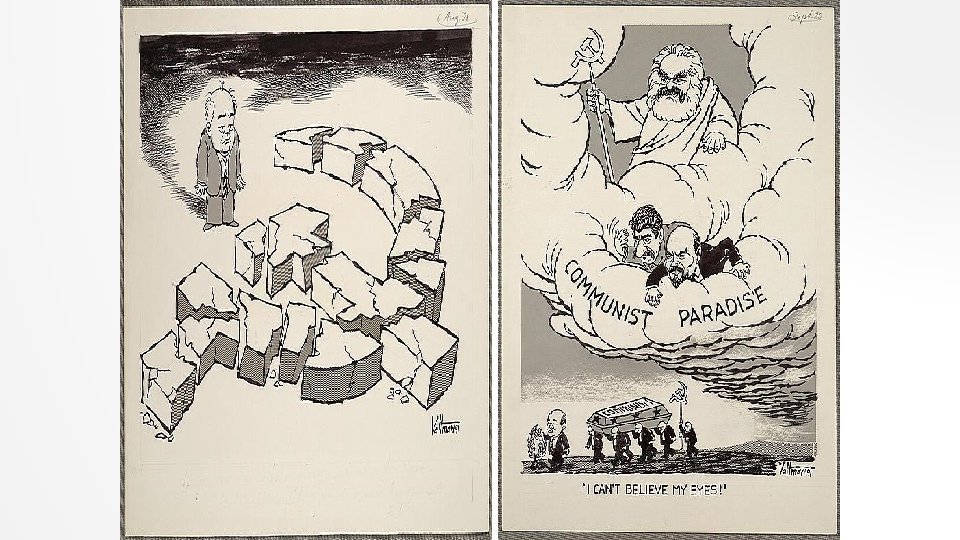 CARTOONS • Work with a partner and analyze each cartoon • Tell me what the meaning of the cartoon is • How does it relate to the cold war topics we studied