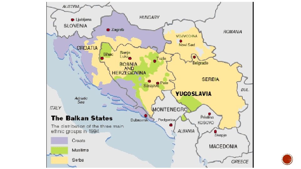 § Despite relative independence from Soviet control, the disintegration of the USSR in the late 1980 s had a profound impact on Yugoslavia. § The collapse of Soviet communism triggered the fragmentation of the Yugoslav federation into competing ethnic and political groups. § After Tito’s death in 1980, Yugoslavia’s various ethnic and religious groups began raising their nationalist voices to demand greater autonomy. § Without Tito’s strong leadership, the Communist Party was unable to contain the discord