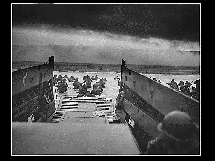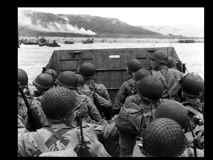 D. June 1944 - “Operation Overlord” 1. D-Day: June 6, 1944 a) Goal: Drive G out of Fr b) Allied attack on Normandy Fr c) largest amphibious attack in World History http: //www. britannica. com/dday/art-40584 d) over 1 million Allied troops landed on shore safely e) August 1944 – G retreat out of Paris