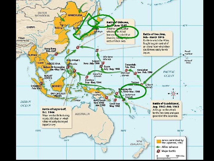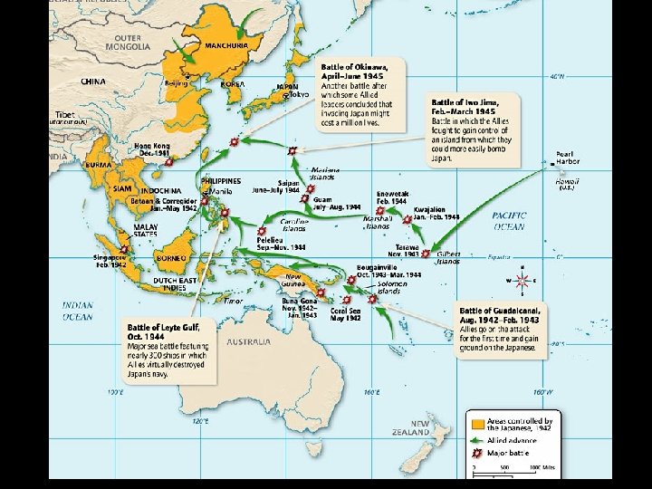 IX. War in the Pacific A. J Refuses to Surrender 1. J navy is nearly destroyed 2. J army still had 2 million soldiers B. Island Hopping 1. Island Battles at Midway, Guadalcanal, Iwo Jima, Okinawa 2. J fought to the death 3. Many Americans died in fierce fighting 4. Kamikaze suicide missions