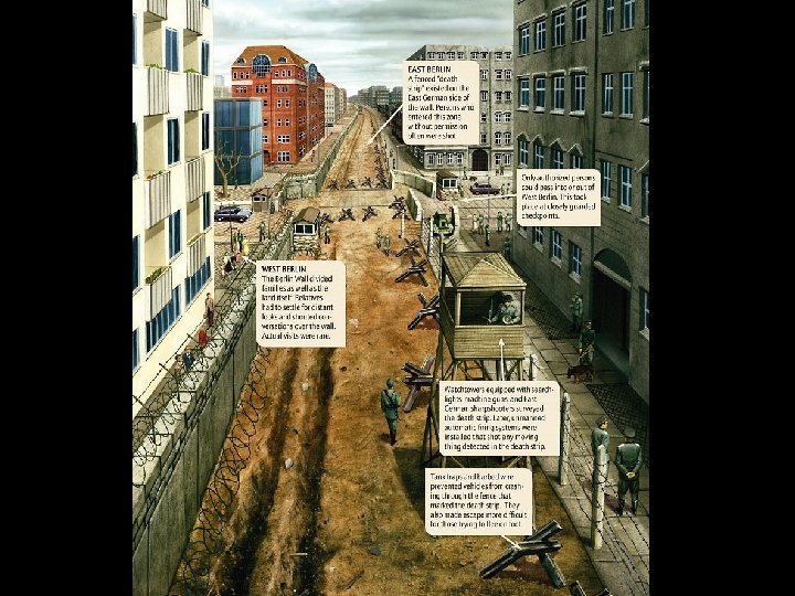 E. The Fall of the USSR 1) 1989 – E. Eu nations (Poland, Czech, Romania, Bulgaria etc) hold elections 2) E. Ger allows E. Berliners to move to W. Berlin 3) Berlin Wall is torn down 4) 1990 – E and W Ger unify 5) Dec. 1991 – USSR Republics hold elections, become independent 6) USSR no longer exists – Cold War Ends, Boris Yeltsin rules 7) 2000 – Vladimir Putin rules a “managed democracy”