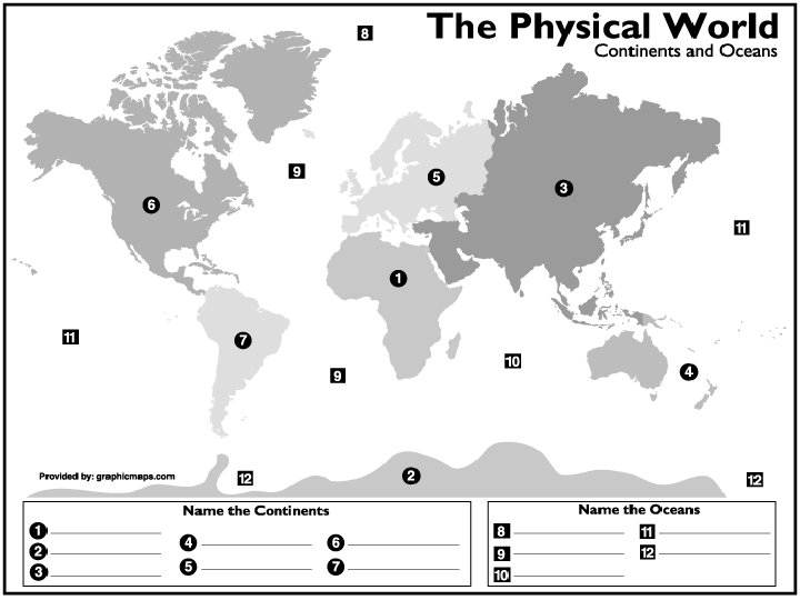World Map Answers Continents Oceans 1 Africa 8